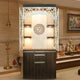 Both usability and elegance are attained through an open shelving that can display idols and photo frames with a closed storage cabinet below to keep other essentials such as incense sticks, match boxes or religious books organized. A specific dedicated drawer further adds to the convenience.